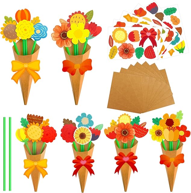 The Fancy Land 24 Pcs Fall Crafts for Kids Flower Bouquet DIY Autumn Floral Craft Kit School Classroom Home Activities