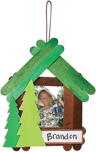 The Fun Express Wood Craft Stick Camp Frame Craft Kit – Crafts for Kids and Fun Home Activities – Vacation Bible School Supplies/Decor – Makes 12