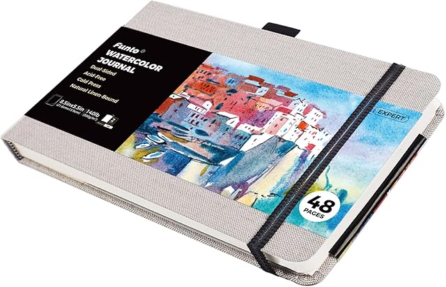 The Funto Watercolor Journal, 8.5×5.5, 48 Pages, Cold-Pressed, Inner Paper Pocket and Elastic Band, Art Supplies for Mixed Media