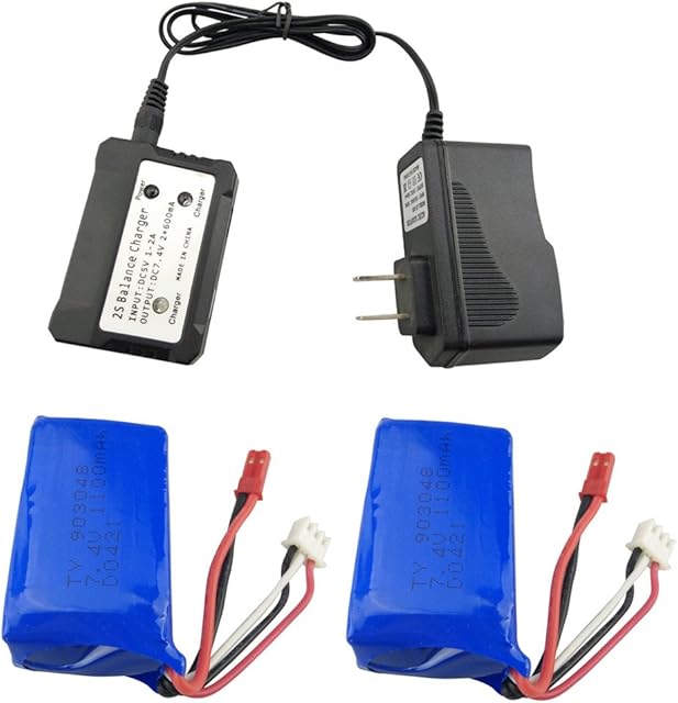 The Fytoo 2PCS 7.4V 1100mah Battery with 2-in-1 US Stardard Charger for WLtoys A949 A959 A969 A979 S989 V912 T23 T55 F45 A320 A321 RC Remote Control Car