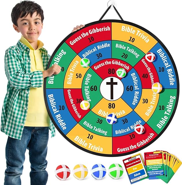 The Garybank Faith Darts Bible Trivia Games for Kids Adult Family, 66 Flash Cards W/ 260+ Questions, Christian Bible Study Supplies for Youth Group, Teens, Disciples, Church, Kids Birthday Gifts