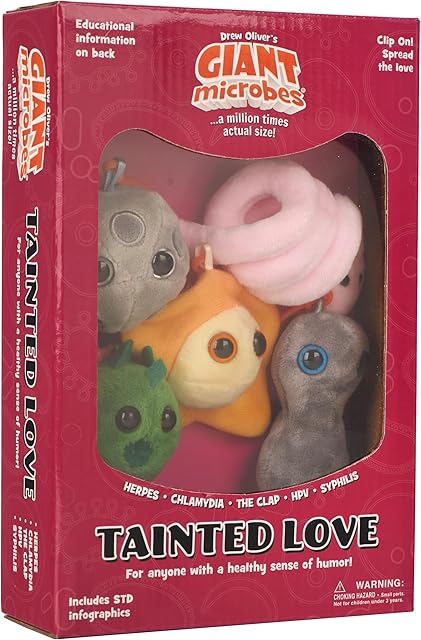 The GIANTmicrobes Tainted Love Themed Gift Box, STIs, STDs, Medical Lab Technician Gifts, OBGYN Gifts for Doctors, Infection Prevention Gift, Infection Control Nurse, Medical Presents, Bag Charms