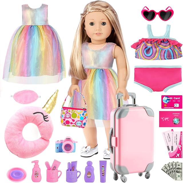 The GIFTINBOX 29PCS 18 Inch Girl Doll Clothes and Accessories-Travel Play Set for Dolls, Doll Stuff with Clothes, Luggage, Swimsuit, Wallet cashes… Gifts for Girls Birthday, Christmas is now available in our store. Order your GIFTINBOX 29PCS 18 Inch Girl Doll Clothes and Accessories-Travel Play Set for Dolls, Doll Stuff with Clothes, Luggage, Swimsuit, Wallet cashes… Gifts for Girls Birthday, Christmas today at a great price and enjoy free shipping!