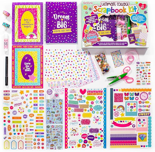 The GirlZone Ultimate Collage Scrapbook Kit, Includes Scrapbook Stickers and Fun Scrapbook Accessories to Make an Amazing 40-Page Photo Album Scrapbook, Perfect for Valentine and Easter Gifts