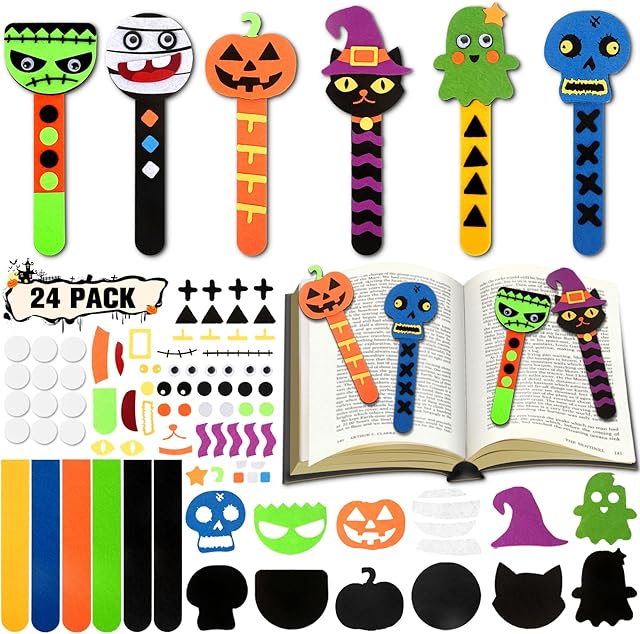 The Halloween DIY Bookmarks, 24 Pack Arts and Crafts for Kids 4-12, Party Favors, Activities Kit for Boys Girls, Goodies Bag Stuffers