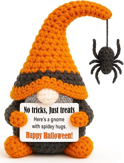 The Halloween Treats Non Candy, Crochet Spider Gnome, Halloween Trick or Treat Toy Gifts for Kids Teens, Best Goodie Bag Stuffers in Treat Bag & Boo Basket