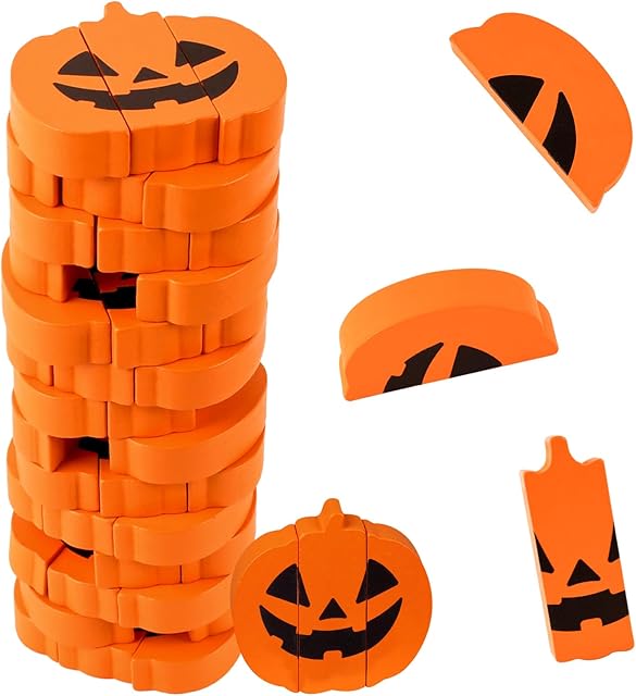 The Halloween Wooden Blocks Stacking Game, Tumbling Tower and Balance Games, Ideal for Family Gathering, Fall Pumpkin-Themed Indoor and Outdoor Play& Decor