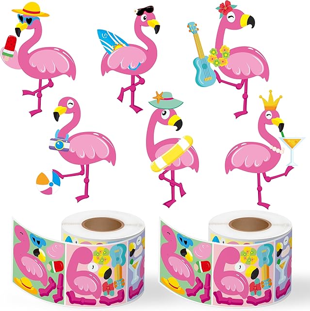 The Haooryx Summer DIY Sticker Roll – 300pcs Make Your Own Flamingo Stickers Roll Giftwrap Mix And Match Summer animal Kids’ DIY Paper Craft Bullet Journal Student Award Incentives Water Bottles Scrapbook