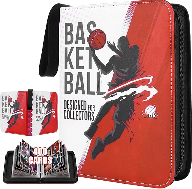 The HBK Basketball Card Binder 400 Pockets, Large Capacity PU Leather Trading Card Album with 50 Removable Sleeves, Waterproof 3-Ring Zipper Organizer for Sports & Trading Cards