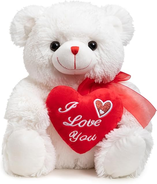 The HollyHOME Teddy Bear Stuffed Animal I Love You Teddy Bear with Heart Soft Plush Toy Gift 12 inches White