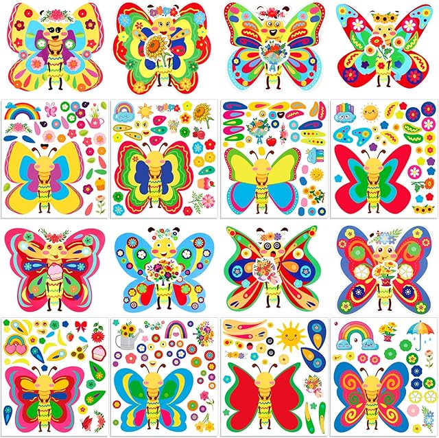 The HOWAF 24 Pieces Spring Butterflies Craft Stickers Make Your Own Butterfly Stickers Spring DIY Art Craft Kits Party Decorations, DIY Butterfly Sticker for Spring Easter Holiday Party