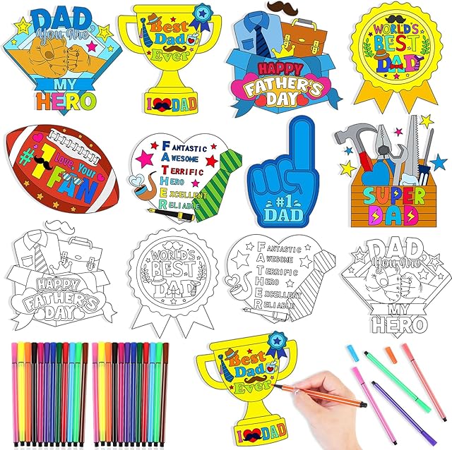 The HOWAF 24pcs Color Your Own Father’s Day Cards with Paint Pens, Fathers Day Coloring Card Dad’s Day Craft Classroom Activities, DIY Coloring Gift Cards for Daddy Papa Grandad Stepdad Gifts Supplies