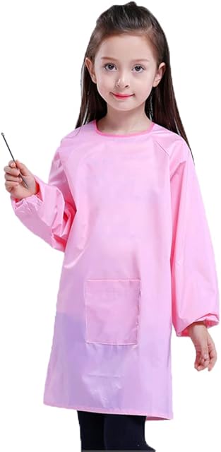 The Huahui Kids Art Smock Waterproof Child Artist Painting Apron with 2 Pockets for Girls School Art Class Age 2-12
