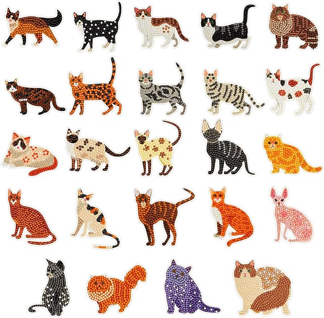 The Hungdao 24 Pcs 5D DIY Diamond Sticker Painting Creative Sticker Kids Painting Kits Resin Rhinestone Gem Art Kits for Kids Adult Activity New Year Party Gifts (Cat)