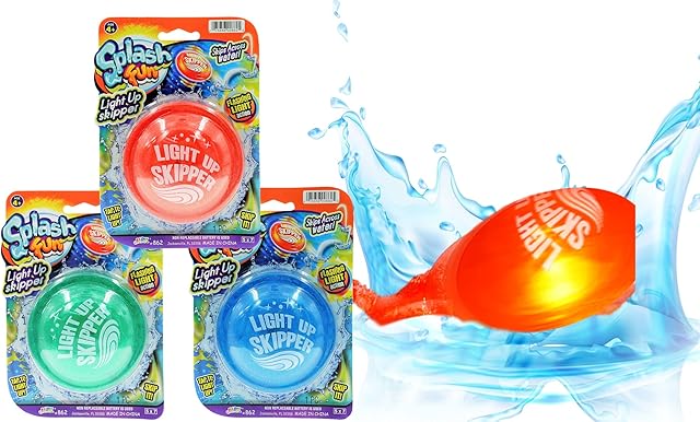 The JA-RU Light Up Water Skipper Disc (3 Disc Toys) Skip Ball for Kids. Outdoor Water Sports Games. Cool Beach Gadgets & Swimming Pool Summer Toys. Easter Basket Stuffers. 862-3p