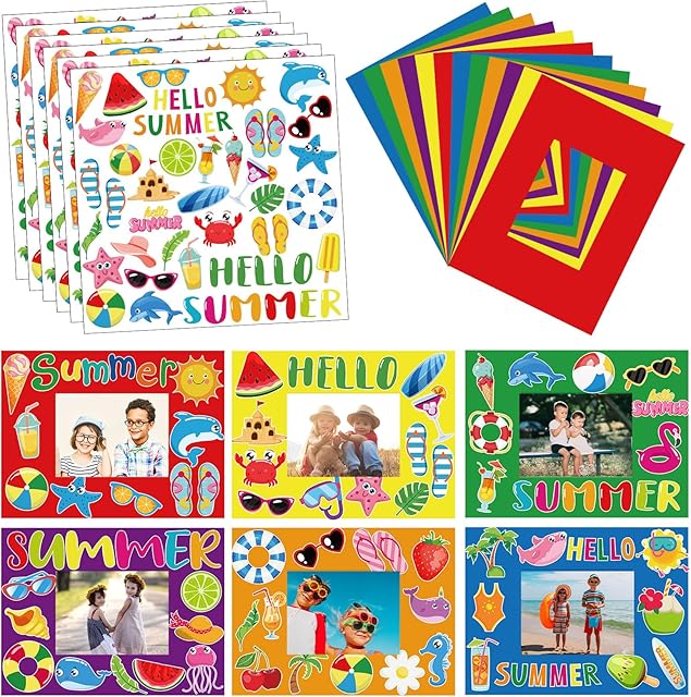 The Jetec 30 Pack Summer Craft Kits End of School Year Picture Frame Craft with 12 Sheet Stickers Beach DIY Children Craft Kits for Classroom Summer Activities Bulletin Board Party Decor