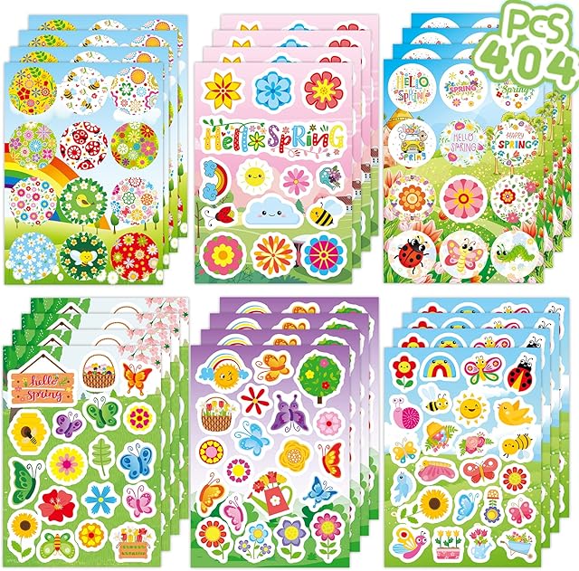 The Joy Bang 404PCS Spring Stickers for Kids, 24 Sheets Garden Stickers Flower Stickers Nature Stickers Spring Stickers Crafts for School Classroom Teachers Childrens Spring Party Favors Supplies Gifts