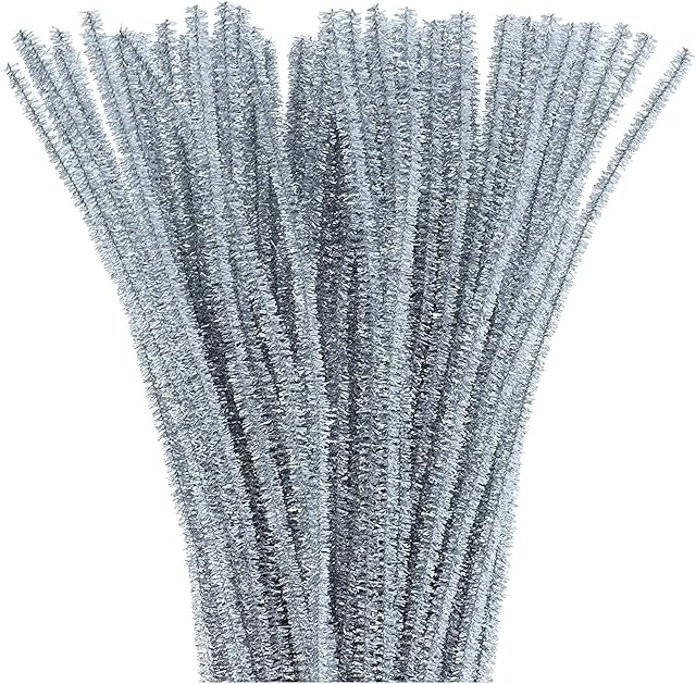 The Juvale Chenille Pipe Cleaners – 12 in x 0.23 in, 500 Pack – Silver Tinsel Finish – Strong & Flexible Craft Wire for DIY Crafts & Pipe Cleaner Flowers