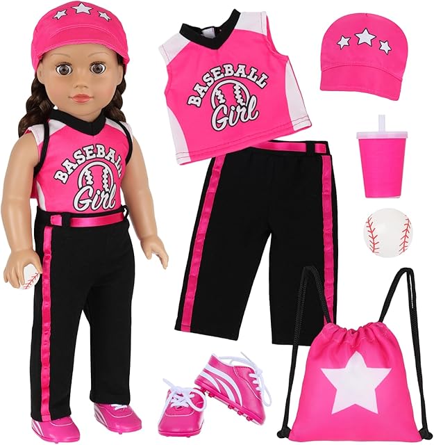 The K.T. Fancy 7 PCS American 18 Inch Doll Rose Baseball Sweatshirt Doll Accessories Set Compatible with 18 Inch Girl Dolls