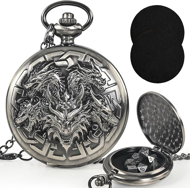 The Kabinka DND Dice Set, 7pcs Mini Metal Dice with Pocket Watch Shell, Portable D&D with Necklace, Dungeons and Dragons Dice for RPG(Five-Headed Dragon, Ancient Silver) is now available in our store. Order your Kabinka DND Dice Set, 7pcs Mini Metal Dice with Pocket Watch Shell, Portable D&D with Necklace, Dungeons and Dragons Dice for RPG(Five-Headed Dragon, Ancient Silver) today at a great price and enjoy free shipping!
