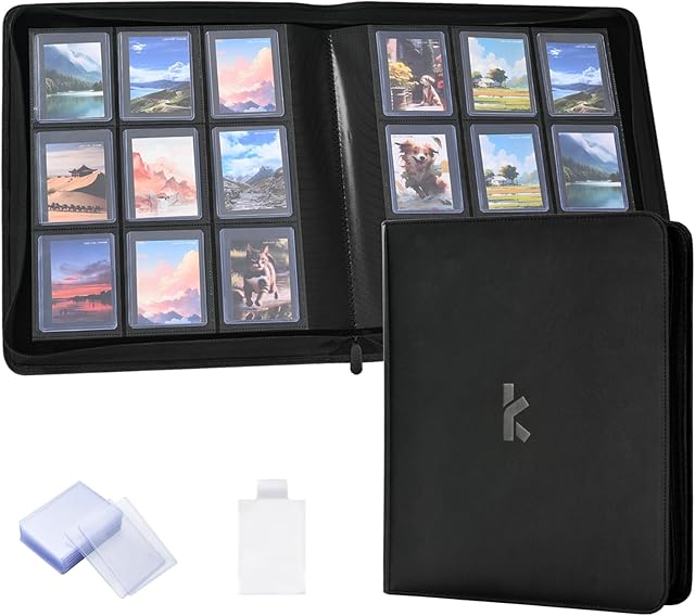 The KLEAR Top Loader Binder, Holds 288 Top Loaders, Include 18 Top Loaders and 100 Tabbed Card Sleeves, 9 Pocket Toploader Binders for 3″ x 4″ Toploader, Zipper and Ringless Trading Card Binder (Black) is now available in our store. Order your KLEAR Top Loader Binder, Holds 288 Top Loaders, Include 18 Top Loaders and 100 Tabbed Card Sleeves, 9 Pocket Toploader Binders for 3″ x 4″ Toploader, Zipper and Ringless Trading Card Binder (Black) today at a great price and enjoy free shipping!
