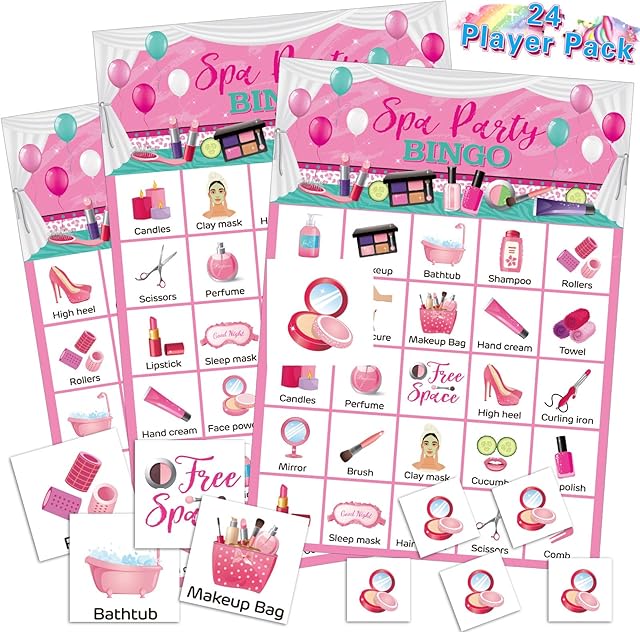 The Liliful 35 Pcs Spa Party Bingo Game 24 Players Makeup Party Bingo Cards Beauty Themed Games for Women Sleepover Spa Day Birthday Favors Family Classroom Activities Supplies(Classic)