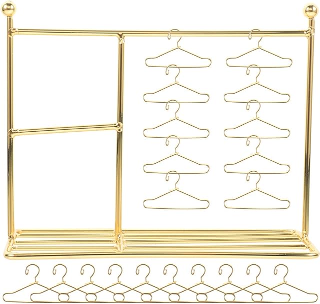 The LOGOFUN Doll Dress Rack Doll Garment Rack with Hanger Metal Doll Clothing Rack Miniature Clothes Rack with Coat Hanger for Dollhouse Accessories – Gold