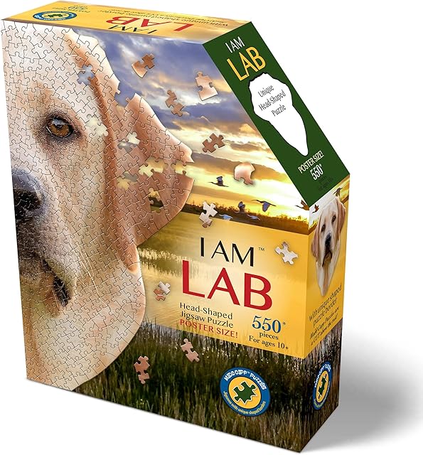 The Madd Capp: I Am Lab – 550 Piece Dog Shaped Jigsaw Puzzle, 28×30 Finished Size, Includes Educational Fun Fact Booklet, Animal Puzzle