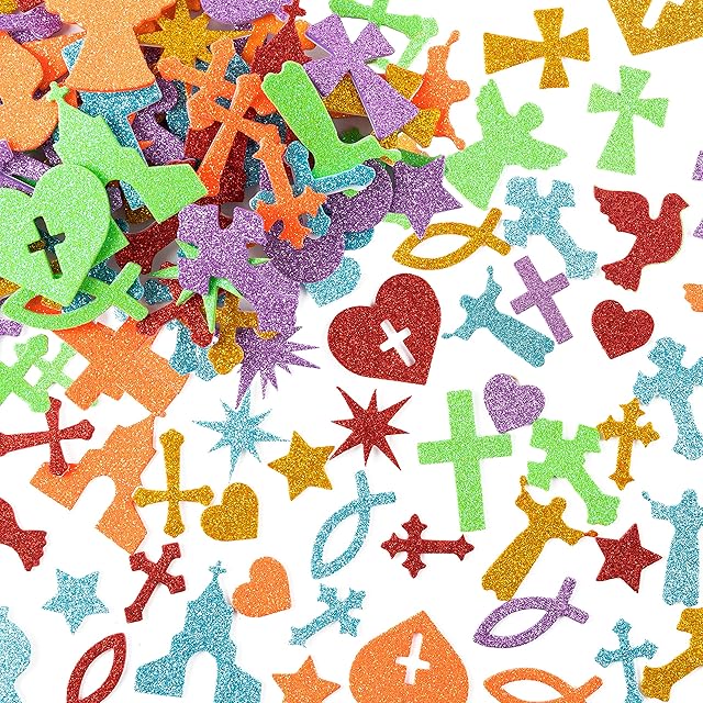 The MALLMALL6 500pcs Christian Glitter Stickers Foam Self-Adhesive Bible Multi-Colour Art Craft Project Assorted Glittery Sticky Embellishments for Kids School Classroom Activity Home Party Decoration
