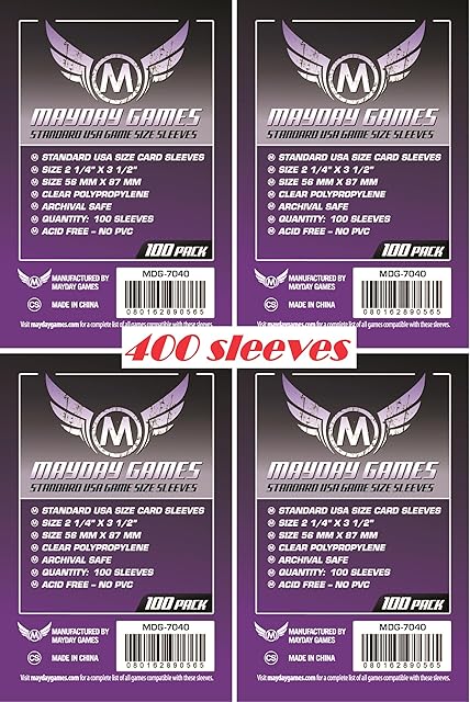 The Mayday Games 7040 Clear Sleeves 56x87mm Standard USA Game Size (4×100 Pack, 400 sleeves)