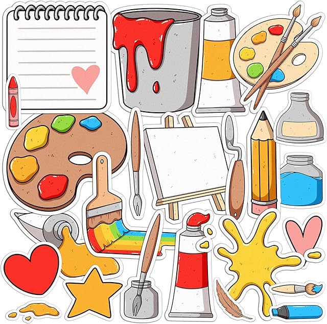 The Mertak – 24 PCS – Sticker Pack for Laptop Vinyl for Artist Waterproof Paint Brushes for Notebook Set for Water Bottle for Crafts Kids for Planner for Tablet School Decals Scrapbooking Art Supplies