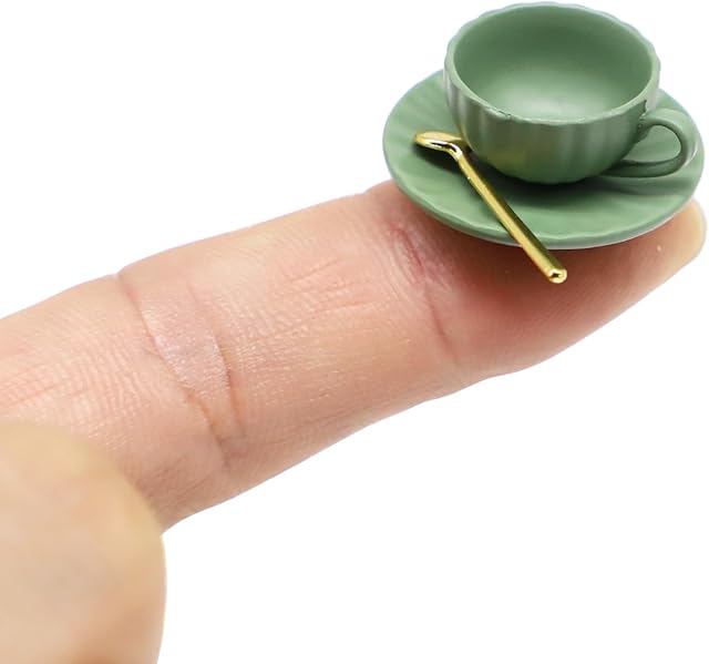 The Miniature Tea Cup Saucer Spoon Set, Dollhouse Accessory Mini Coffee Cups, Espresso Mug Tea Cup Set for Dollhouse Miniatures Diorama Ornament Supplies (1PCS) (Green)