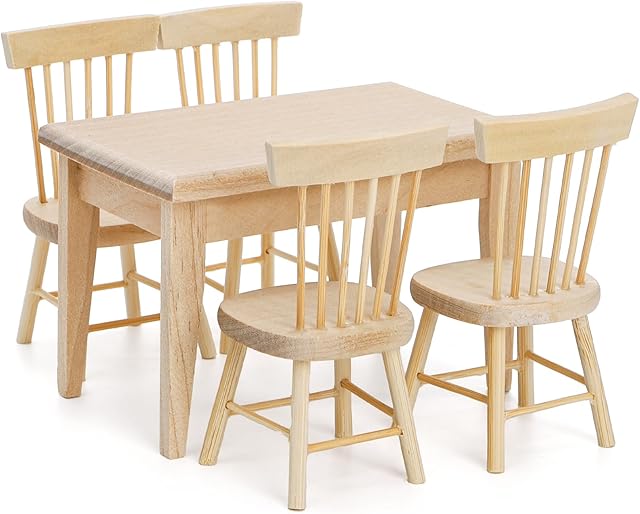 The Nicunom Dollhouse Dining Room Furniture Set, 1/12 Scale Miniature Table and 4 Chairs, Wooden Doll House Accessories is now available in our store. Order your Nicunom Dollhouse Dining Room Furniture Set, 1/12 Scale Miniature Table and 4 Chairs, Wooden Doll House Accessories today at a great price and enjoy free shipping!