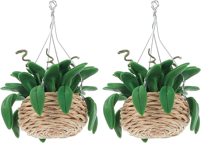 The NUOBESTY 2pcs 1 12 Scale Mini Dollhouse Plants, Miniature Hanging Potted Houseplant Mini Bonsai Plant Pot Models for Kids DIY Miniature Dollhouse Accessories, Fairy Garden Ornament