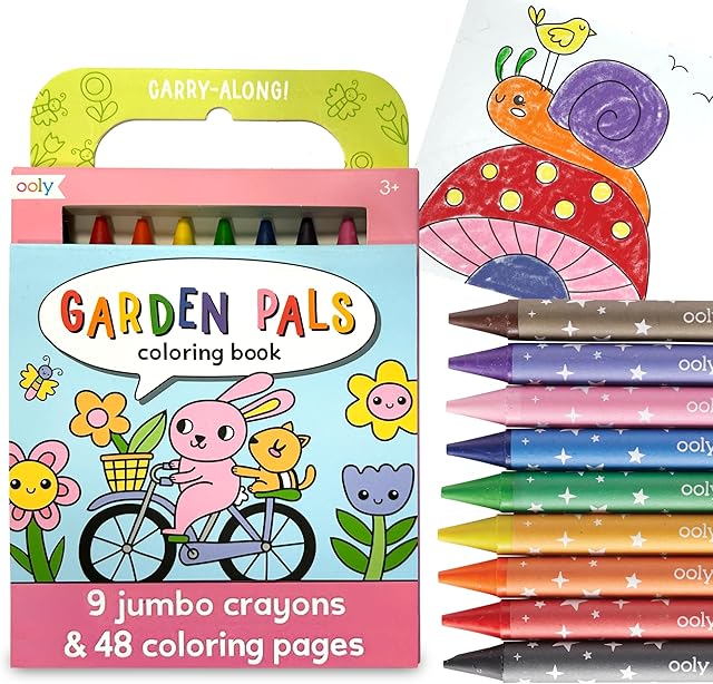 The Ooly Travel Art Kit with 9 Jumbo Crayons, 48 Themed Coloring Pages & Case for Easy Traveling Art Creation, Perfect Road Trip Activities for Kids – Garden Pals