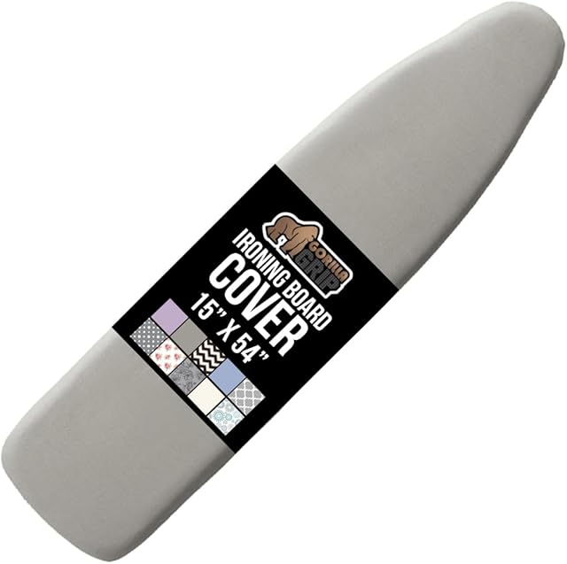 The Original GORILLA GRIP Ironing Board Cover and Pad, Silicone Coating, Thick Scorch Resistant Padding, Heavy Duty Iron Covers Standard Boards, Hook and Loop Fastener Strap, Silver, 15×54