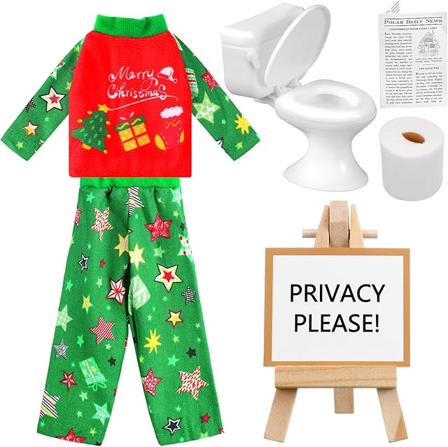 The Outus 6 Pcs Christmas Doll Accessories Christmas Newspaper and Toilet Set, Pajamas Newspaper Display Stand Card Toilet Paper for Xmas Clothes and Accessories Gift Doll Decorations(Geen)