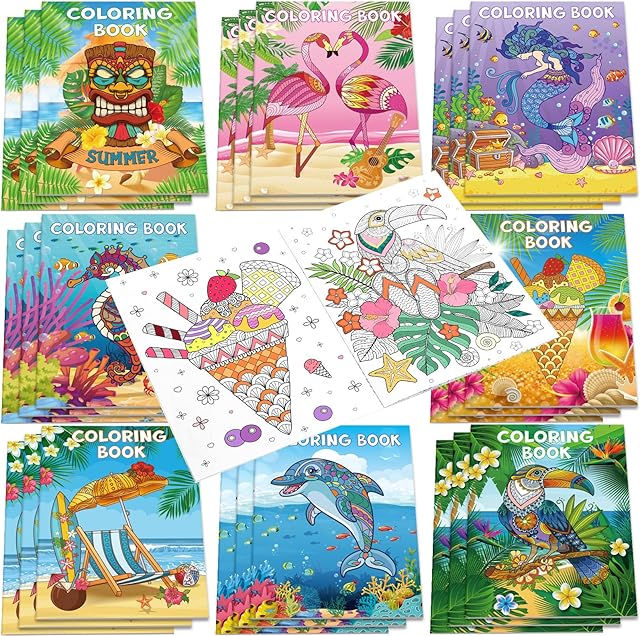 The Pasimy 24 Pack Summer Coloring Books Bulk Mandala Tropical Coloring Book for Boys Girls Adults Luau Hawaiian Flamingo Summer Beach Baby Shower Birthday Party Favors Gift Bag Fillers Supplies, 8 Styles