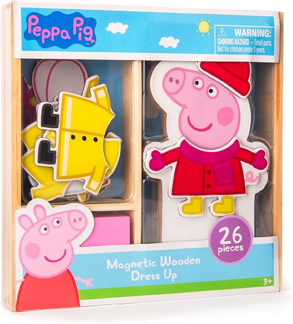 The Peppa Pig Magnetic Wood Dress Up Doll. Includes 26 Colorful Magnetic Wood Pieces and Wooden Storage Box. Encourages Creative Play with Mix and Match Fun for Preschoolers and Kids Ages 3 and over. is now available in our store. Order your Peppa Pig Magnetic Wood Dress Up Doll. Includes 26 Colorful Magnetic Wood Pieces and Wooden Storage Box. Encourages Creative Play with Mix and Match Fun for Preschoolers and Kids Ages 3 and over. today at a great price and enjoy free shipping!