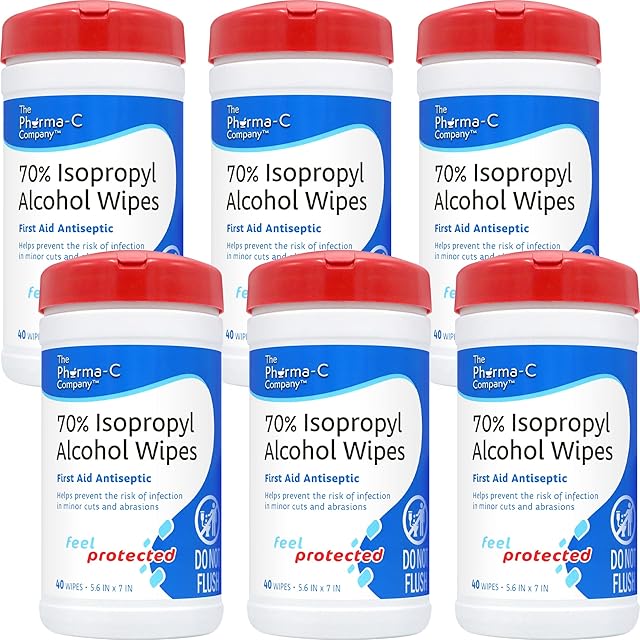 Order The Pharma-C Company -70% Isopropyl Alcohol Wipes [6 pack – 40ct Canisters] – Bulk IPA First Aid Antiseptic Wound Cleaner with Moisture Lock Lid. For minor cuts, scrapes, and burns. today for a best price.
