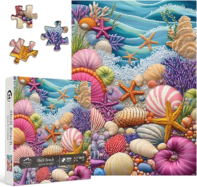 The PICKFORU Beach Puzzles for Adults 1000 Pieces, Colorful Seashells Puzzle Sea Coral Starfish,Impossible Ocean Jigsaw Puzzles as Home Art