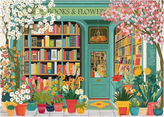 The PICKFORU Book Jigsaw Puzzles 1000 Pieces, Spring Flowers Bookstore Puzzles for Adults, Blooming Bookshelf Puzzle as Home Decor