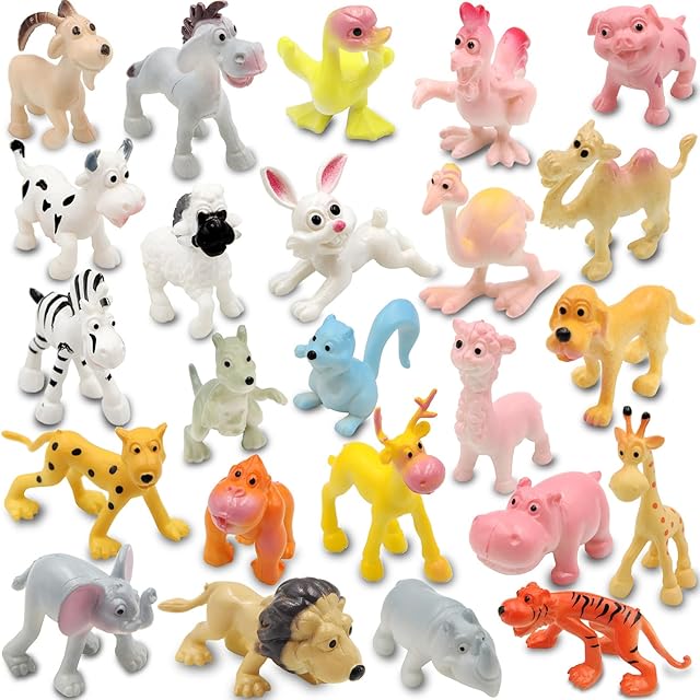 The PINOWU Cartoon Animals 24pcs, Mini Wild Animals Toys Kit, Jungle Animal Figures Set – Tiger Lion Hippo Sheep Deer Duck for Children Party Favors Classrooms Rewards Birthday Gift Educational Toy