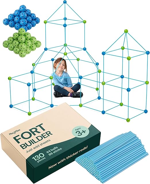 The PLAYVIBE Fort Building Kit – 130 Pieces, Blue – Indoor & Outdoor Play, STEM Toy & Building Toys & Creative Forts