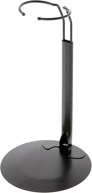 The Plymor DSP-70B Black Adjustable Doll Stand, fits 12, 13, 14, 15, 16, and 17 inch Dolls or Action Figures, Waist is 2.25″ – 2.75″ wide, 6″ – 8″ around