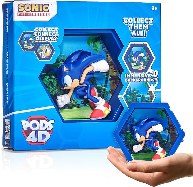 The PODS 4D Sonic | Unique Connectable Collectable Bobble-Head Figure That Bursts from Their World into Yours | Wall or Shelf Display |Sonic Toys and Gifts | Series 1 no. 479