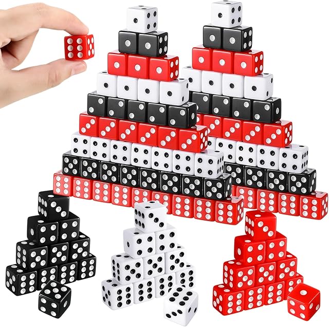 The Poen 150 Packs Standard Game Dices Bulk 16mm Acrylic Casino Dice D6 for Board Activities, Birthday Party Supply(Black, Red, White,Square Corner)