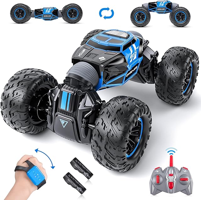 The Powerextra Gesture Sensing RC Car, 1:16 Scale Outdoor Remote Control 4WD Stunt Car, Double Side All Terrains Toy with Two Batteries, 50+ Mins Play Time for Kids & Boys