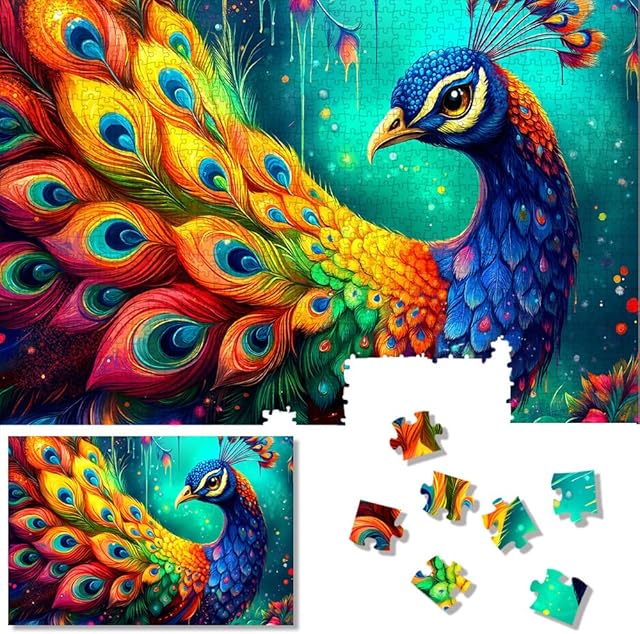 The Premium Jigsaw Puzzles for Adults 1000 Pieces Animal Fantasy Art Puzzles with Letters on Back Colorful Peacock Puzzle Educational Fun Unique Gift Hard Difficult Challenging Family Game