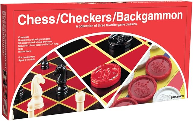 The Pressman Chess / Checkers / Backgammon – 3 Games in One with Full Size Staunton Chess Pieces and Interlocking Checkers, 15.62 x 8.00 x 1.50 Inches is now available in our store. Order your Pressman Chess / Checkers / Backgammon – 3 Games in One with Full Size Staunton Chess Pieces and Interlocking Checkers, 15.62 x 8.00 x 1.50 Inches today at a great price and enjoy free shipping!